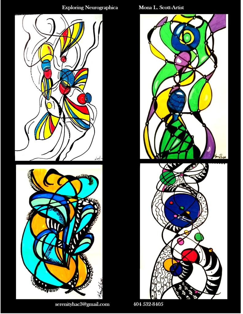 I find creativity to be meditative in nature. Drawing abstract, or whimsical images, designing images for fabric, hammering cooper pipes into another shape and form; allows me to stay grounded in all things physically, spiritually and humanly. My hope is that my style of art allows the viewer to look at life in other shapes and forms too.